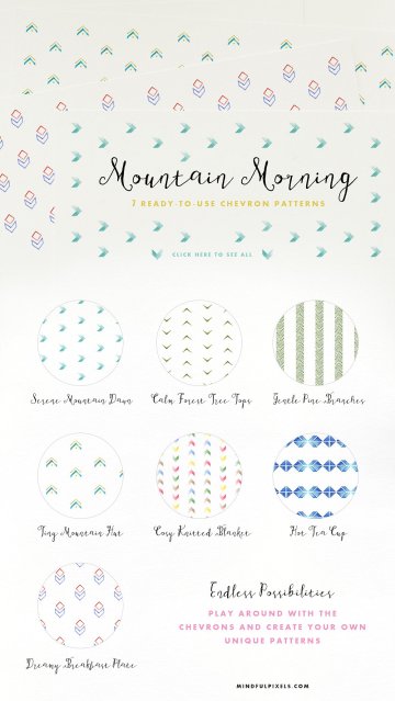“Mountain Morning”图案包,包含7个高分辨率无缝图案