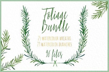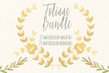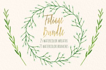 手绘水彩花环花枝插画素材 Wreath-branches-w