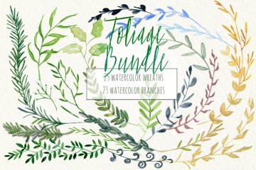 图穷联素材库 » 手绘水彩花环花枝插画素材 Wreath-branches-w