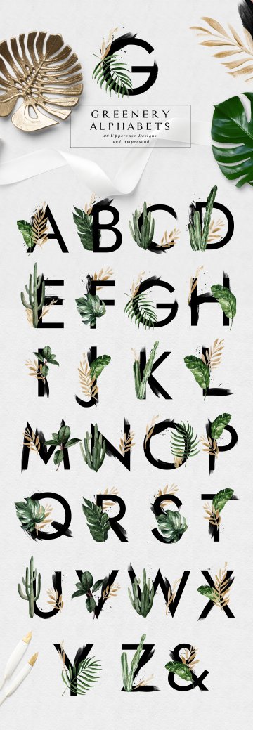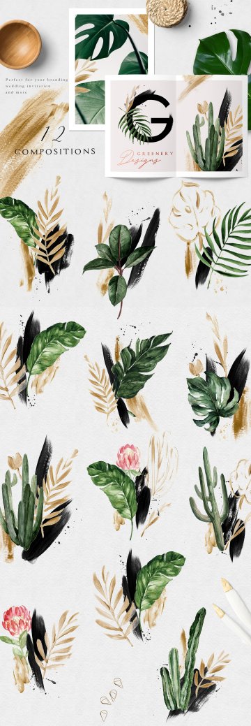 图穷联素材库 » 高品质水彩风格的夏季绿叶素材包合辑 Greenery Sum