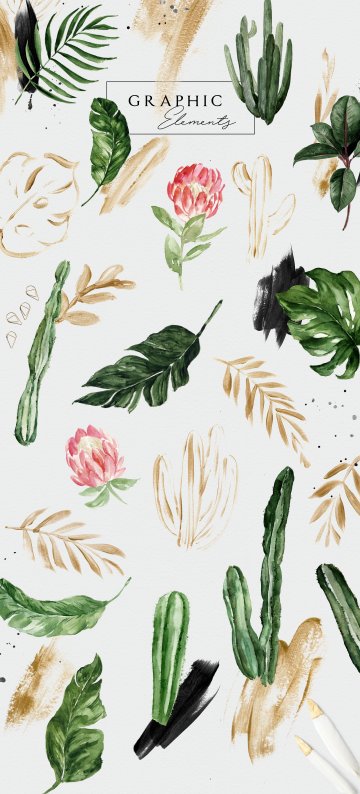 你得到了什么?132PNG(300dpi)手绘水彩图形图像,