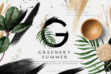 高品质水彩风格的夏季绿叶素材包合辑 Greenery Sum