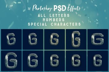 分层的Photoshop PSD文件,为这些字母提供10种效果 - 使用智能对象