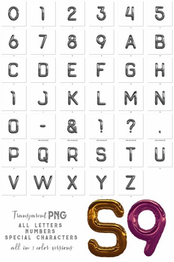 高分辨率3D铝箔气球样式字母渲染(3000x3000 - 但字母大小约为1500x2000)。非常适合您的标题,海报,广告 - 任何网络或印刷项目。你会发现这里还有10个效果的分层PSD文件(阴影,效果......) - 只需替换智能对象中的字母,你就会在所有10个效果中看到字母。