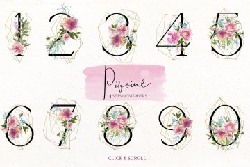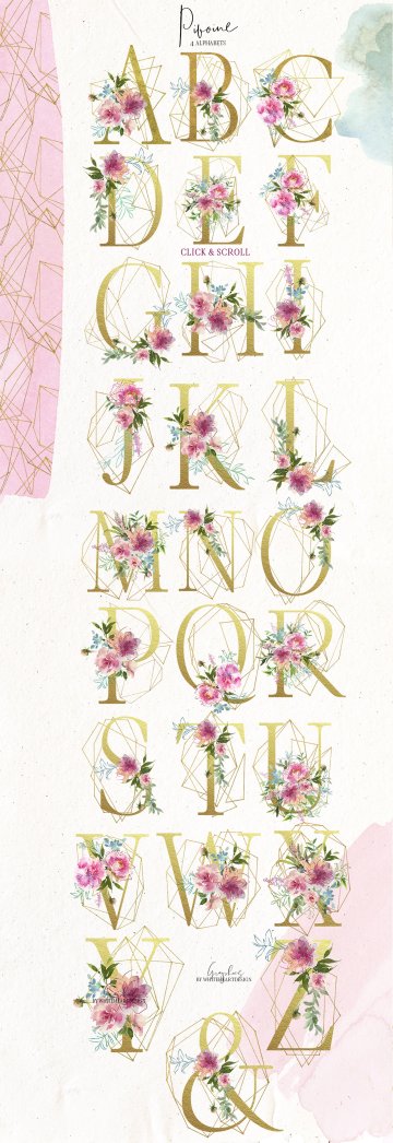 图穷联素材库 » 手绘水彩花卉字母数字设计素材 Pivoine-Waterco