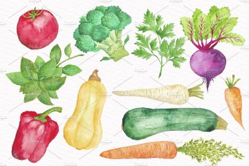 手绘水彩蔬菜插画设计素材 Vegetable-Waterco