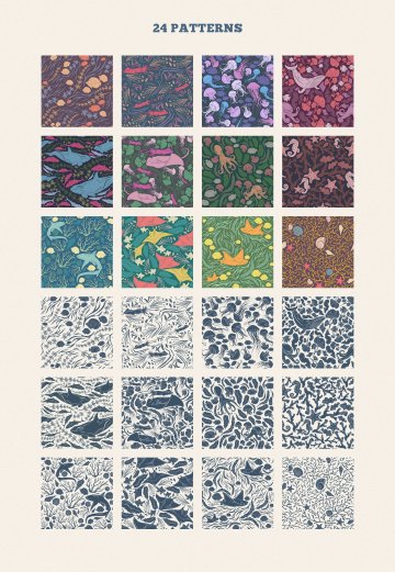 水下王国不仅仅是一种模式。相反,它是一个令人难以置信的巨大和多功能的集合,每个项目都是夏天的共鸣和欢乐!欢迎海马,珊瑚,海蜇,鲸鱼,rajas等等,在一些奇特的海洋温暖的海水中玩耍。我们相信它们将成为您服装和文具设计,品牌项目或家居装饰的哇哇哇哇。只需深入探索40个矢量插图和24个可爱图案!