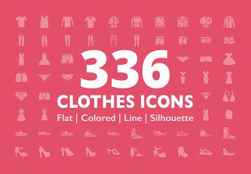 336个服装服饰高跟鞋运动鞋裤子内衣衬衫礼服矢量图标集Clothes Icons