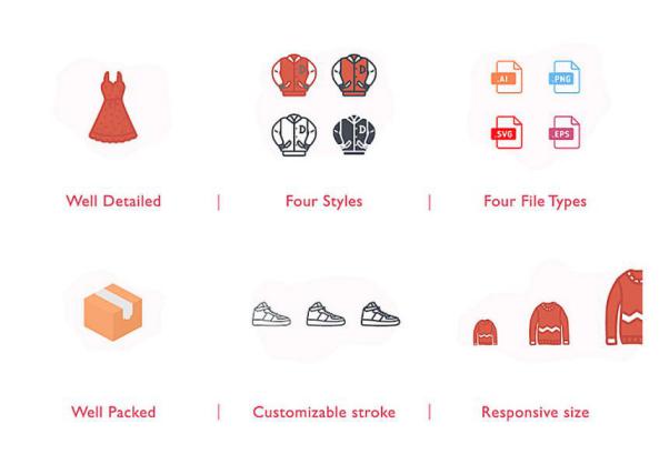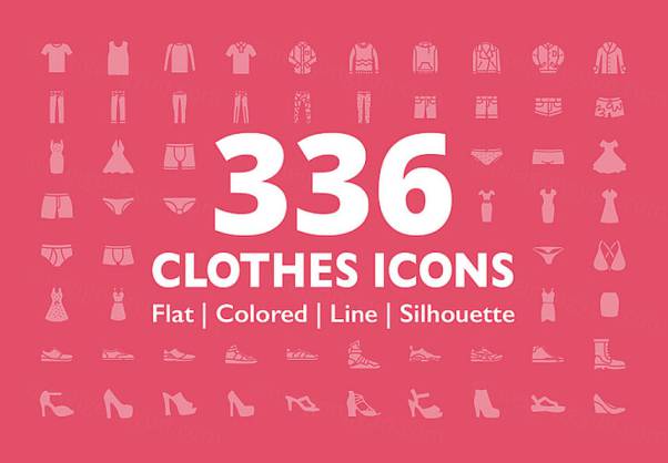 图穷联素材库 » 336个服装服饰高跟鞋运动鞋裤子内衣衬衫礼服矢量图标集Clothes Icons