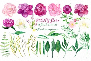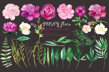 图穷联素材库 » 牡丹花丛水彩花卉设计素材 Peony-flora-wate
