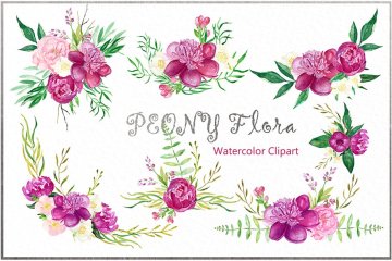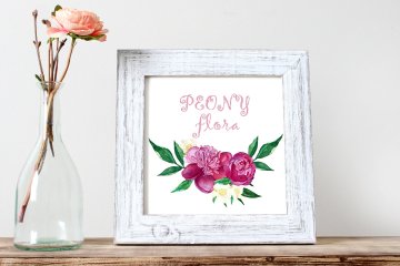 牡丹花丛水彩花卉设计素材 Peony-flora-wate