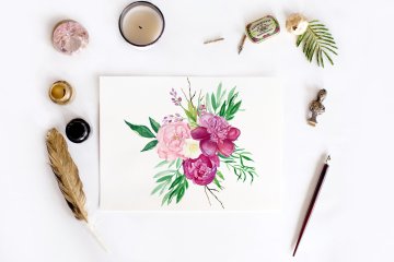 每个元素都画在水彩纸上,尺寸可以在Photoshop或在线编辑器等编辑软件中改变。