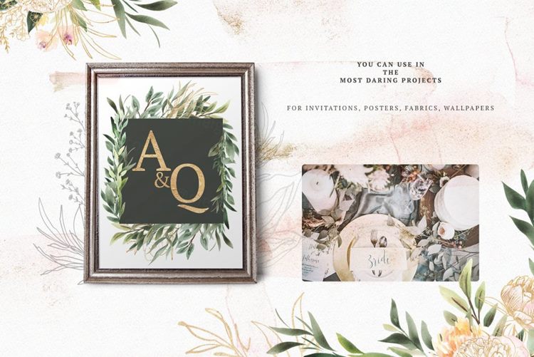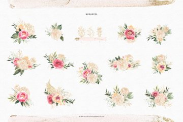这款温柔而多彩的套装专为您的新项目而设计。该套餐结合了亮度和大胆的水彩画和优雅的金色。