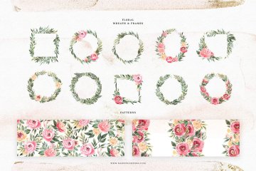 图穷联素材库 » 温柔粉色色调手绘水彩花卉植物设计素材 Watercolor-