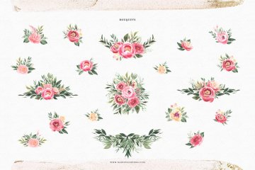 温柔粉色色调手绘水彩花卉植物设计素材 Watercolor-