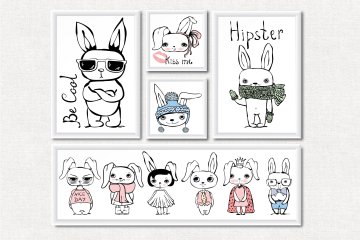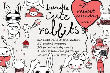 20个可爱的兔子角色AI(也用于JPG,PNG和EPS10)