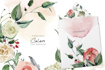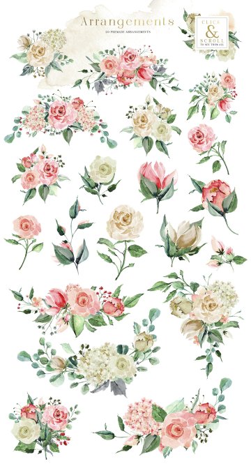 介绍全新的水彩剪贴画集 - Creme&Rose by - Creativeqube Design。