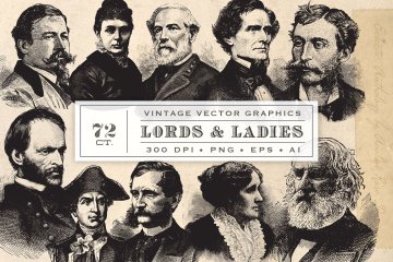 矢量复古手绘绅士淑女形象素材 Vintage-Lords-L