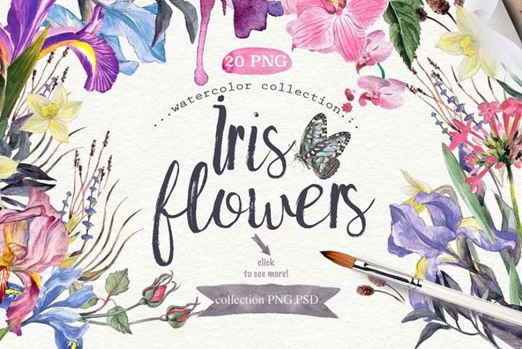 图穷联素材库 » DIY手绘水彩鸢尾花卉插画素材 SAVE-85-Waterc