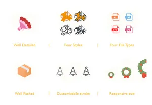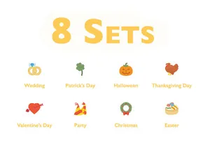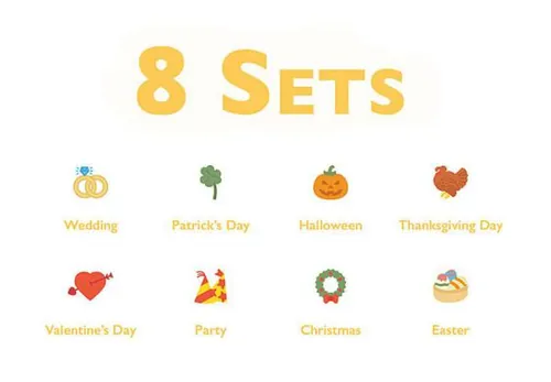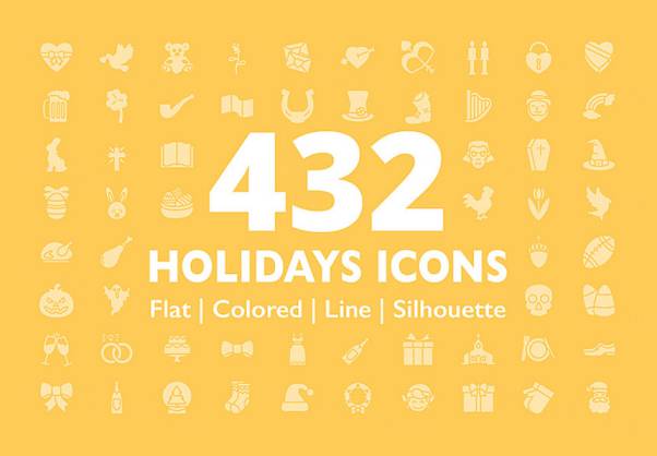 图穷联素材库 » 432个旅行度假婚礼万圣节感恩节情人节圣诞节复活节矢量图标集Holidays I