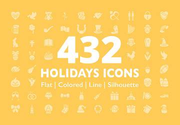 432个旅行度假婚礼万圣节感恩节情人节圣诞节复活节矢量图标集Holidays I