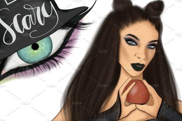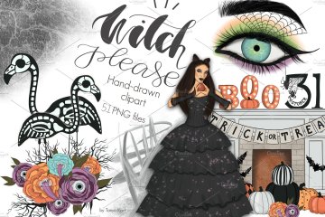 万圣节女巫手绘插图设计元素 Witch-Please-Hal
