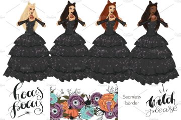 图穷联素材库 » 万圣节女巫手绘插图设计元素 Witch-Please-Hal