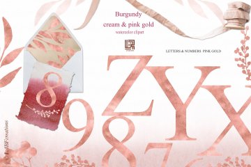 38 PNG与PINK GOLD字母,大写设计+ Ampersand设计和数字