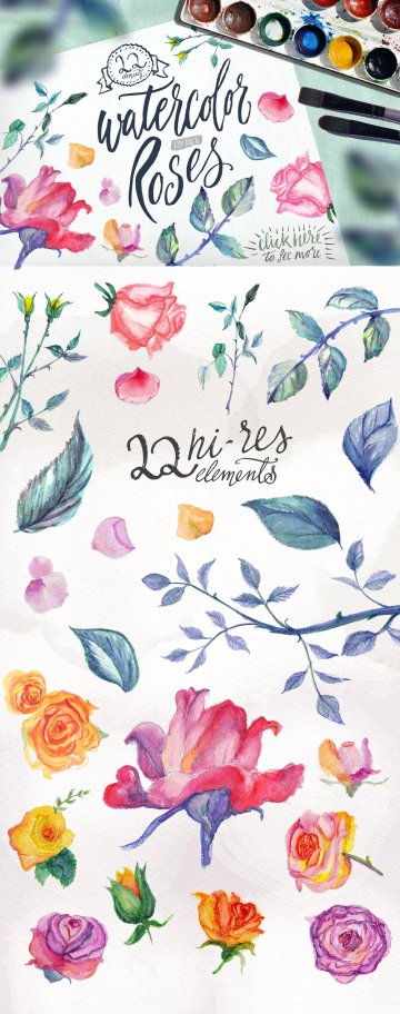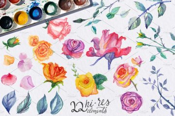 图穷联素材库 » 手绘水彩花卉植物设计素材 Watercolor-Roses-