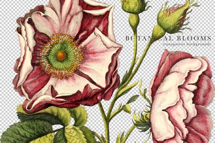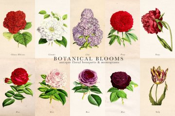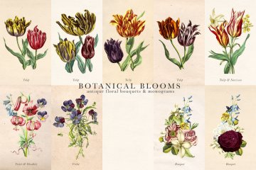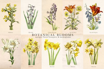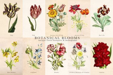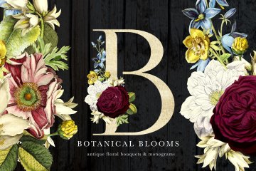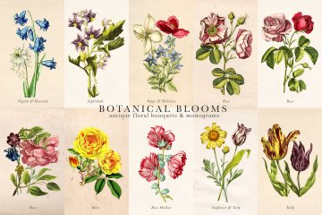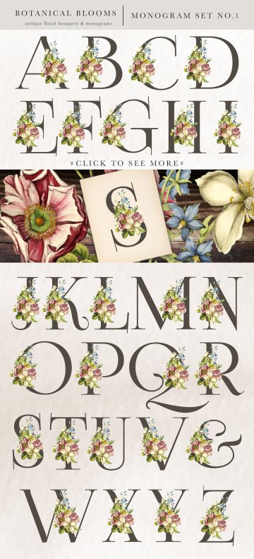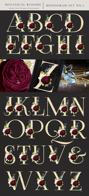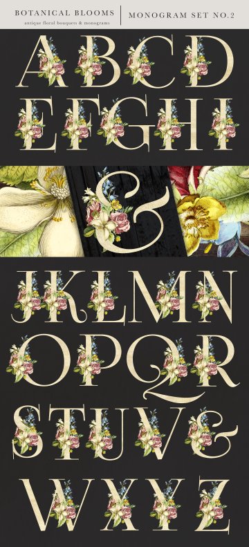 图穷联素材库 » 复古手绘花卉植物字母设计素材 Botanical-Bloo