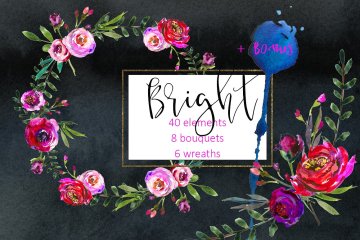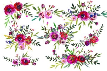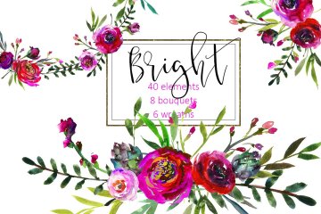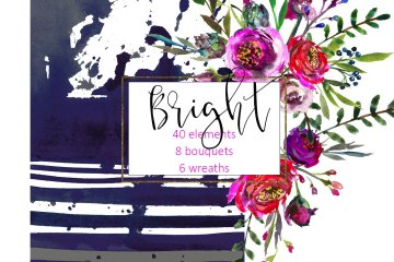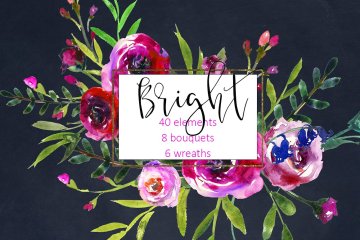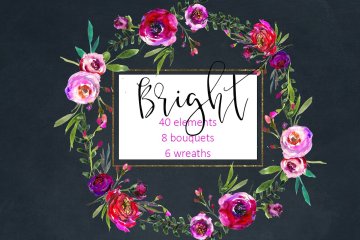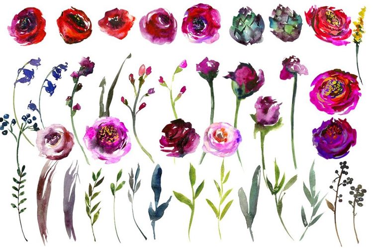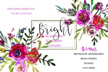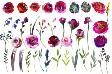 明亮的紫色粉红色和红色牡丹!这个手绘水彩花卉剪贴画集合将是一个伟大的设计婚礼,婴儿淋浴邀请函,名片,保存日期和感谢卡,贺卡,笔记,信件,徽标和网页设计等等!