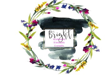 鲜艳的紫色手绘水彩花卉植物设计素材 Bright-Purpl