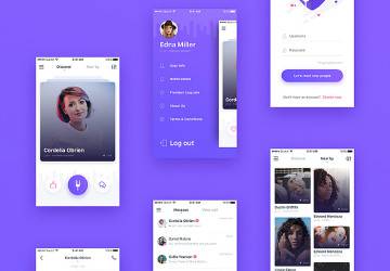 图穷联素材库 » 紫色优雅午餐约会社交媒体交友类移动手机APP应用程序UI工具包Lunchmate