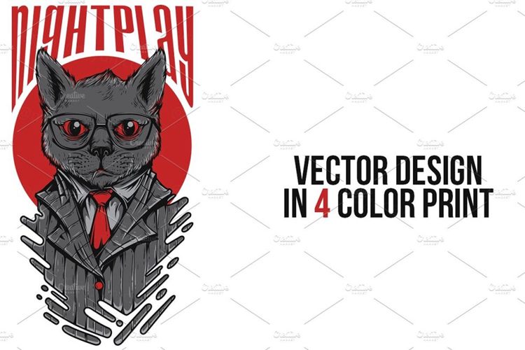 图穷联素材库 » 高品质的猫咪卡通图案设计素材 Nightplay_T_Shi