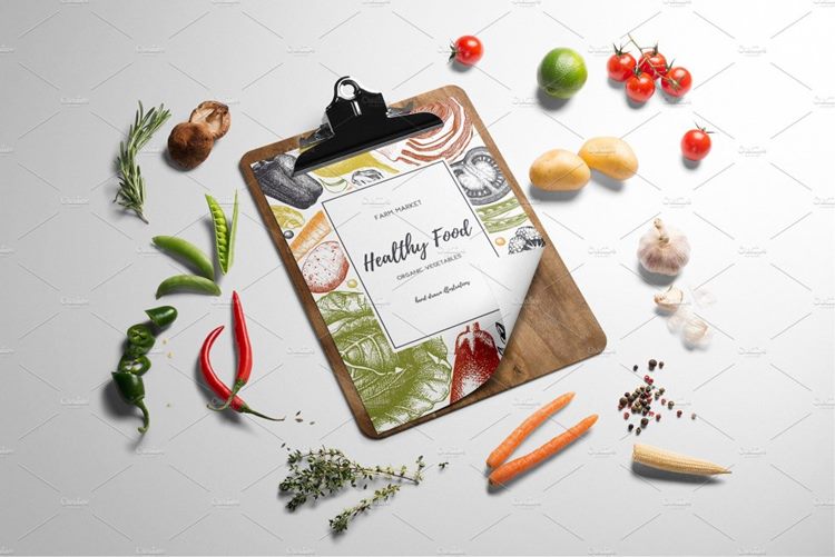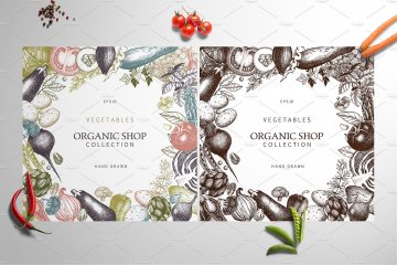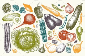 复古手绘蔬菜草图设计素材 Hand-Drawn-Vegeta