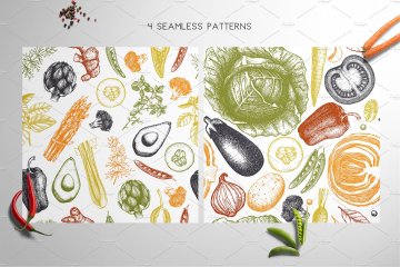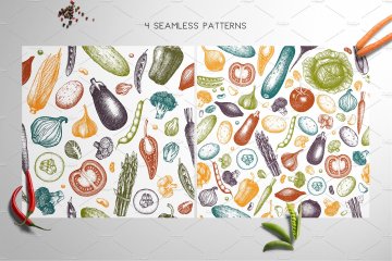 4个EPS文件+ 4个JPG文件 - 4个带蔬菜的无缝模式。