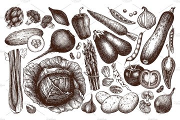 图穷联素材库 » 复古手绘蔬菜草图设计素材 Hand-Drawn-Vegeta