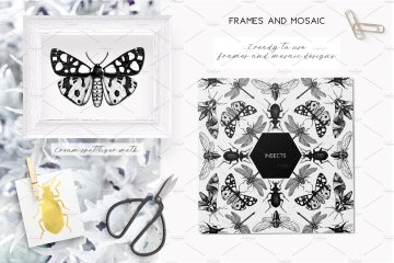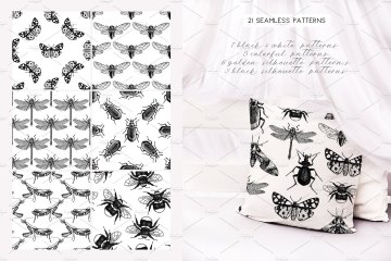 7个EPS + 7个JPG文件 - 7个黑白昆虫图案;