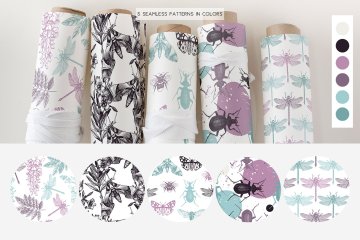 5个EPS + 5个JPG文件 - 5个五颜六色的昆虫图案;
