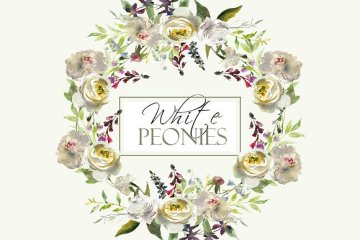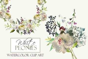 手绘水彩白色花卉设计素材 Watercolor-White-