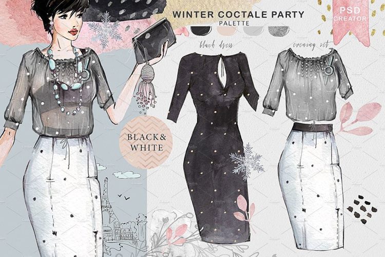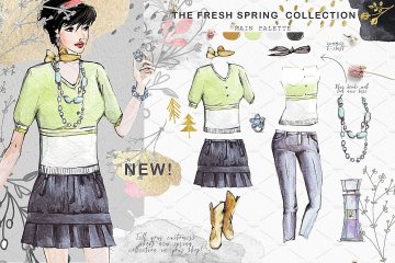 图穷联素材库 » 时尚服饰手绘水彩插画素材 Fashion-clothing-