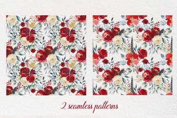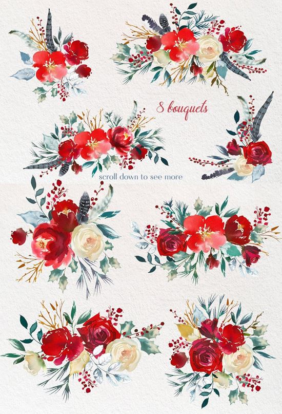 波西米亚风Scandi - 新鲜圣诞水彩花卉系列。