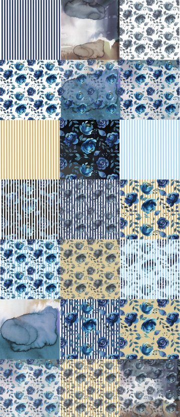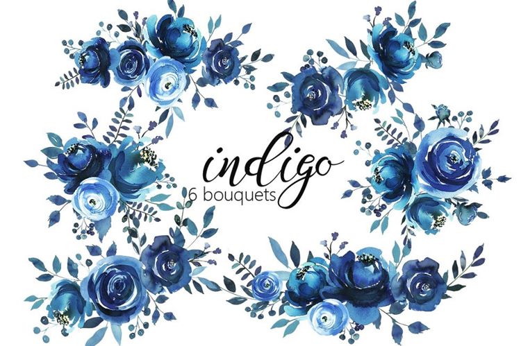 靛蓝手绘水彩花卉设计素材 45off-Indigo-Wate