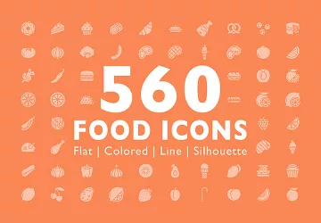 560种食物酒饮料早餐肉糖果蔬菜水果海鲜快餐面包店矢量图标集Food Icons