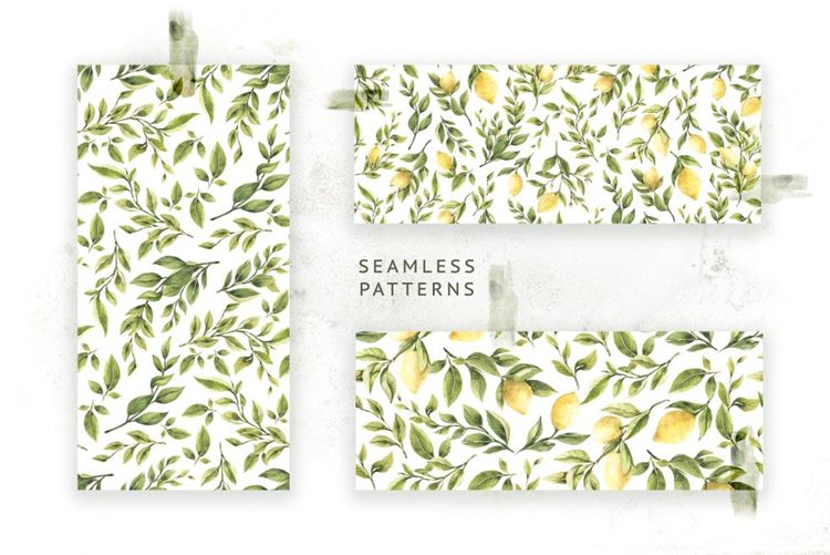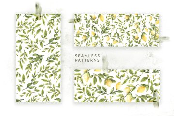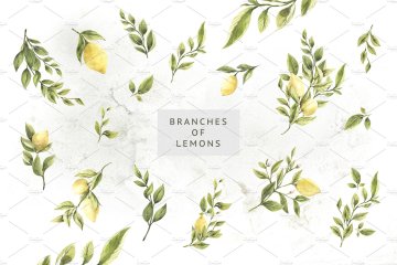 图穷联素材库 » 手绘水彩柠檬主题设计素材 Lemons-Greens