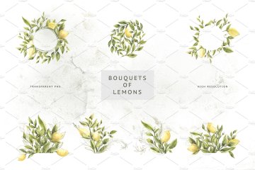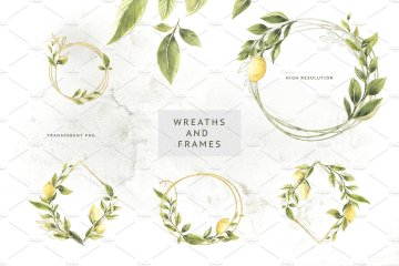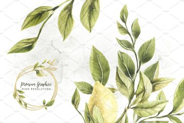 手绘水彩柠檬主题设计素材 Lemons-Greens