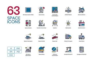 63个维度空间天文学天体平面矢量图标集Space Icons