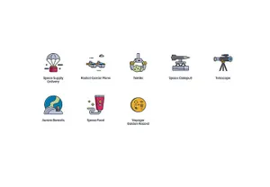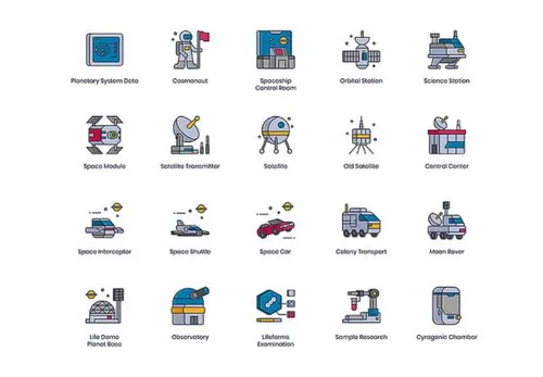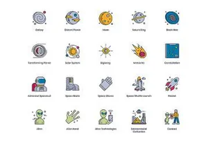 图穷联素材库 » 63个维度空间天文学天体平面矢量图标集Space Icons