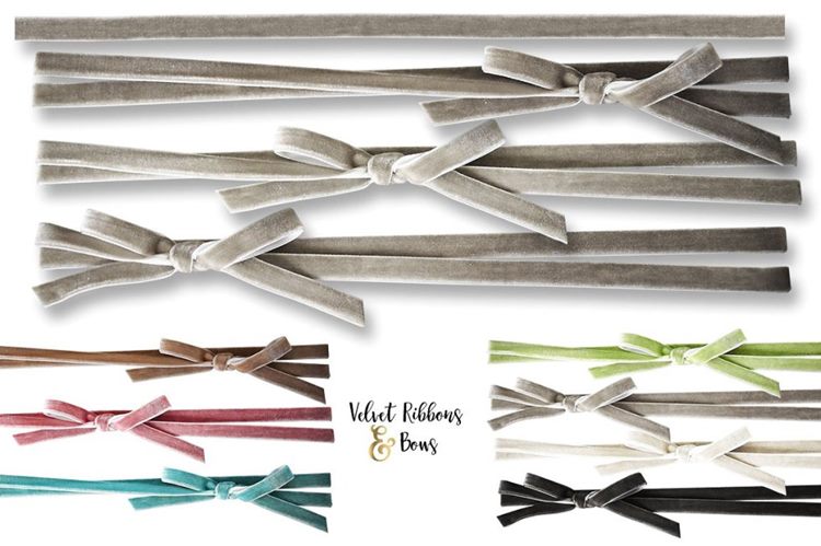 图穷联素材库 » 天鹅绒缎带闪光缎带和蝴蝶结设计素材 Velvet Satin