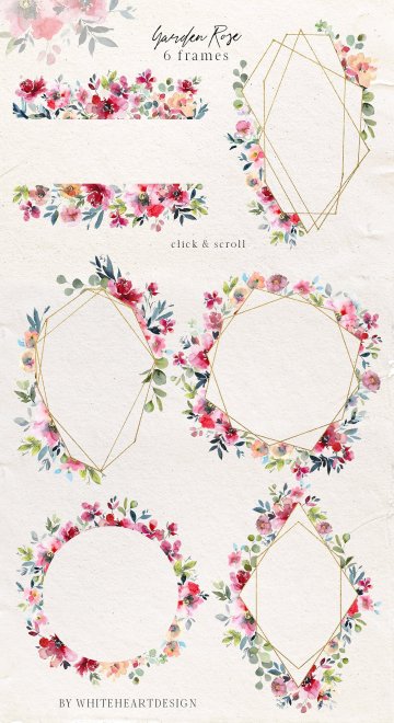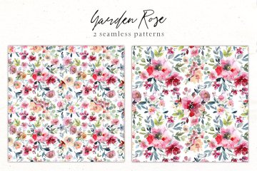 手绘水彩花卉植物设计素材 Garden-Rose-Water